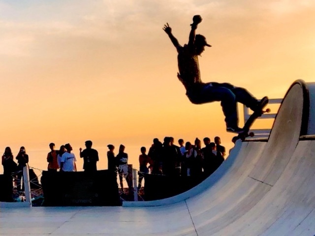 スケートボード、いわゆるスケボー。やってる人が多いですね。この頃、大きな公園にはスケボー専用のコーナーもあるほど。もちろん若い人たちです。笑