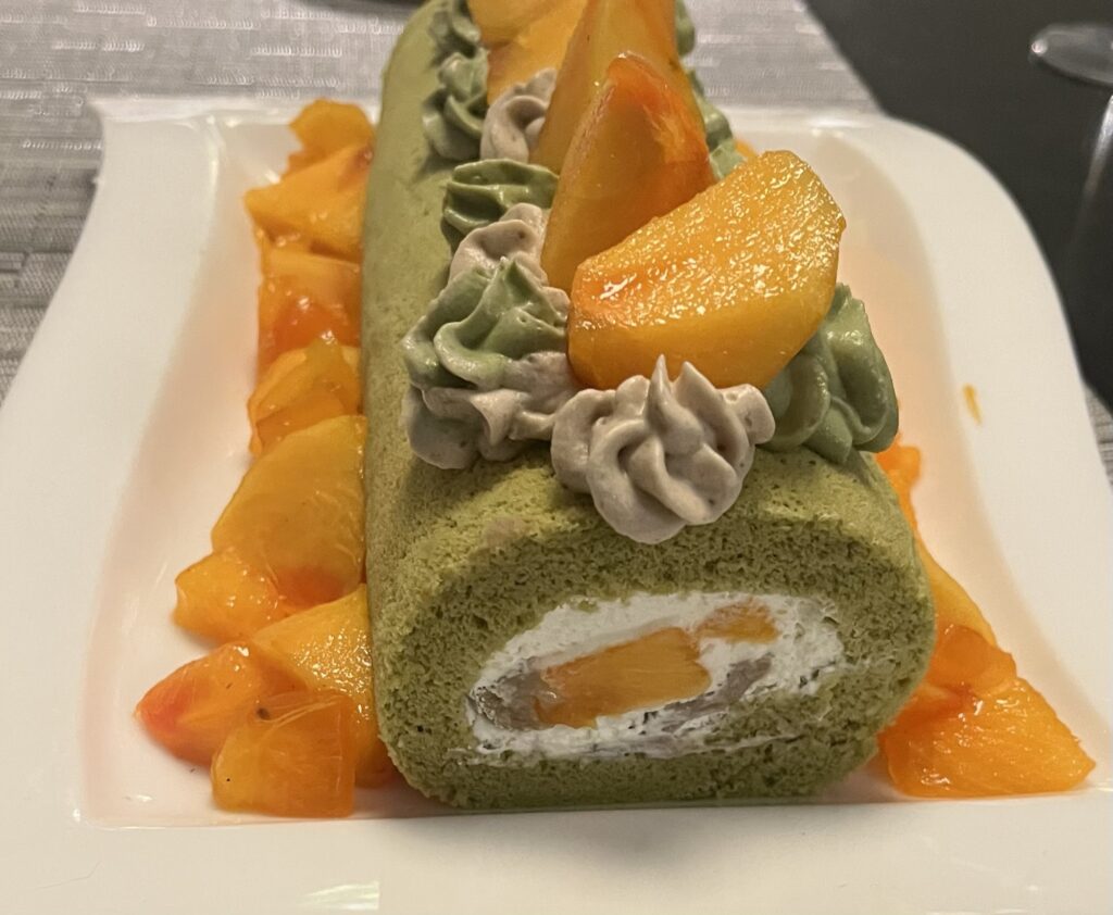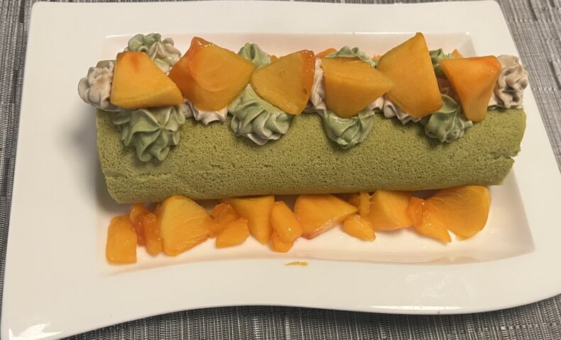 抹茶のスポンジに栗と抹茶のクリームに柿…私の好きなものばかり。そして「ザ・秋」という感じ!