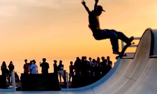 スケートボード、いわゆるスケボー。やってる人が多いですね。この頃、大きな公園にはスケボー専用のコーナーもあるほど。もちろん若い人たちです。笑2028年…